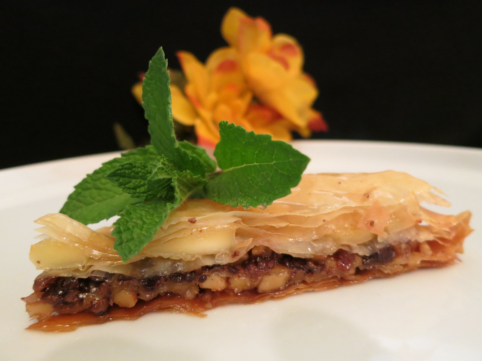 3) Layer 5 more sheets of phyllo and butter and top with remaining walnut mixture.
