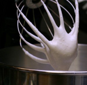 - Firm Peaks- When you turn your whisk upside down, the peaks will hold and the ridges are more distinct.