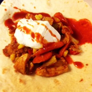 - Heat tortillas up, and fill the tortillas with the chicken fajita mix.
