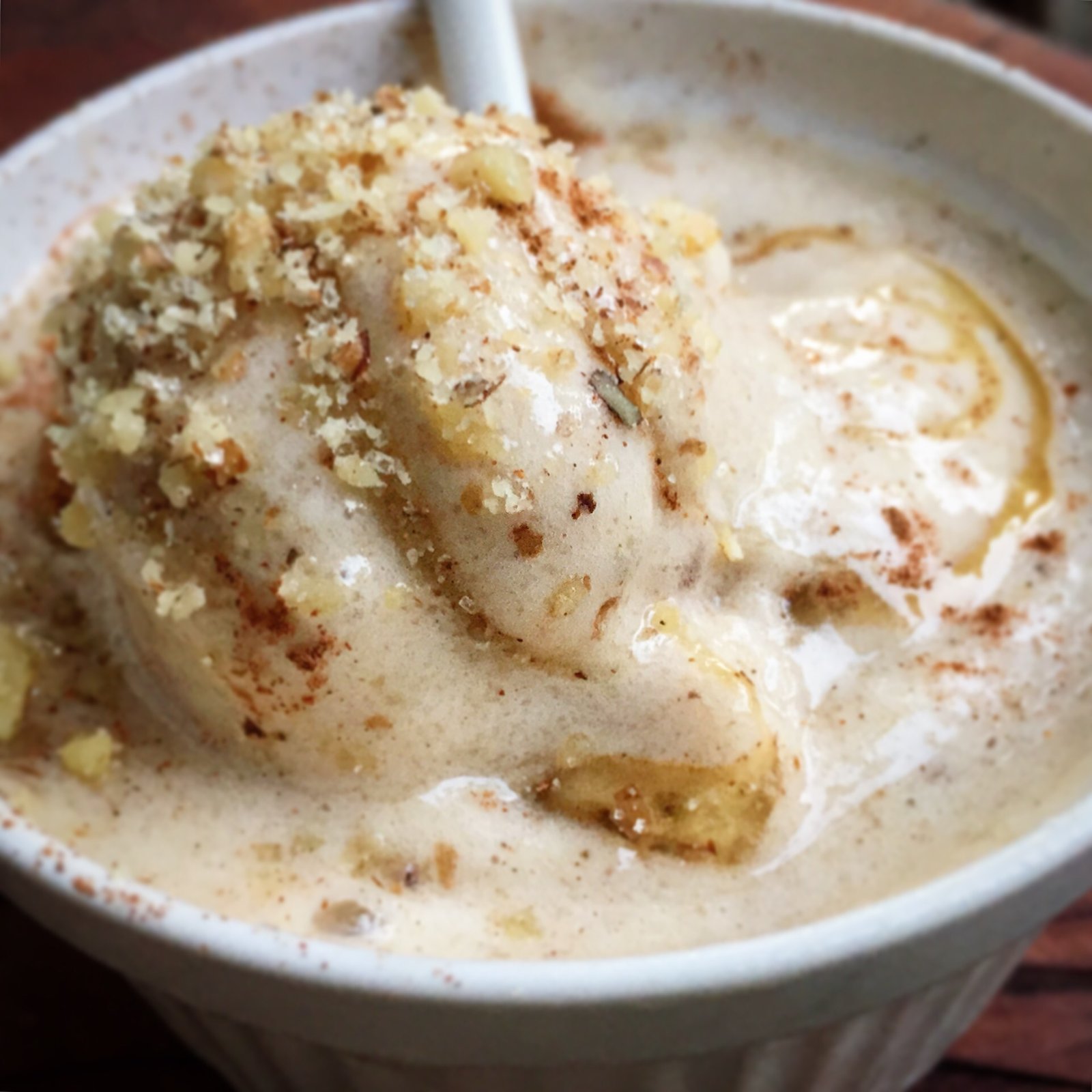 - Remove from freezer and serve with cinnamon, nuts, and honey.