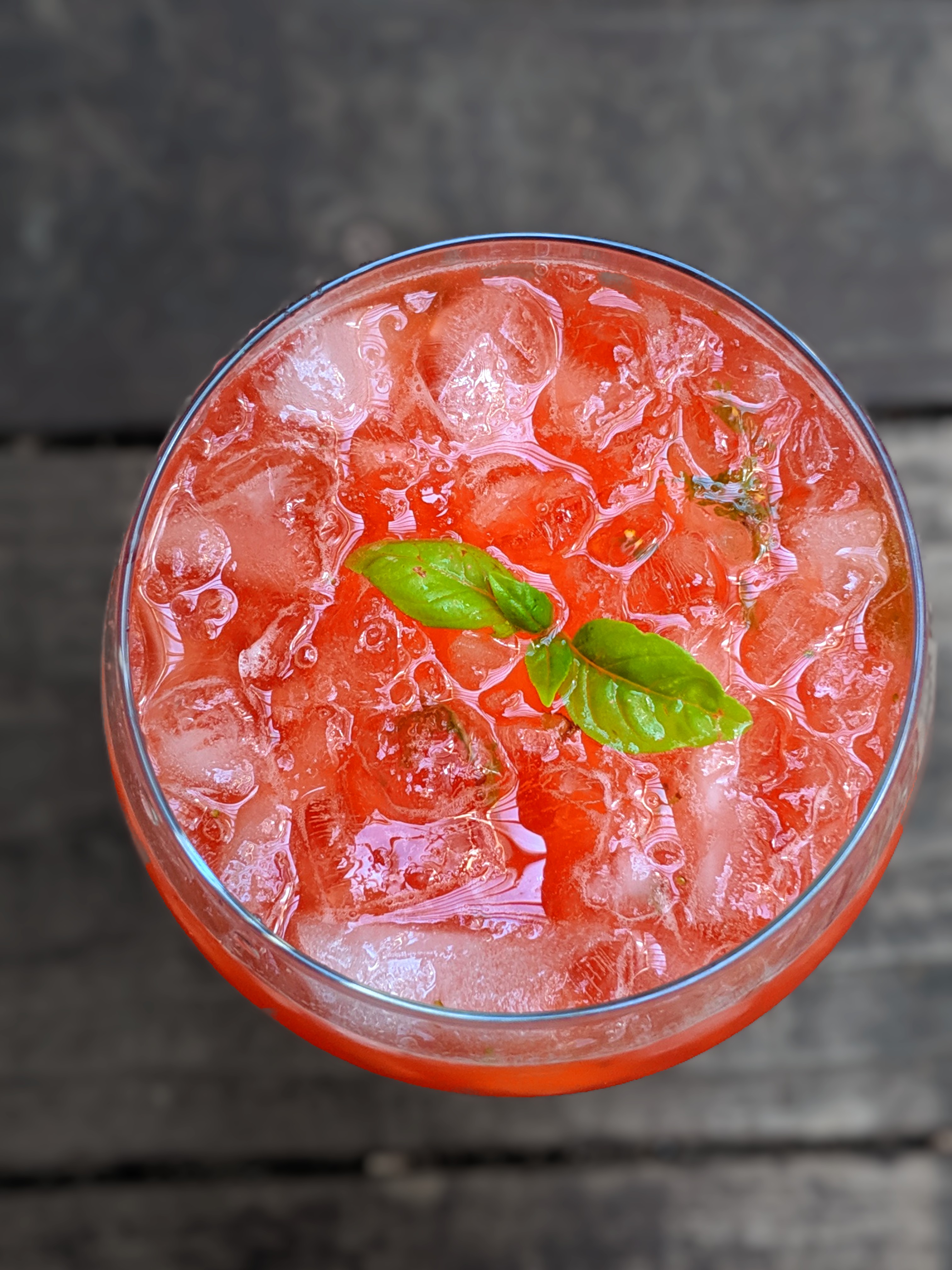 - Add all three ingredients to a metal martini shaker and muddle the mixture by using the end of a wooden spoon or any mortar and pestle works too. Muddle until the basil leaves are minced.