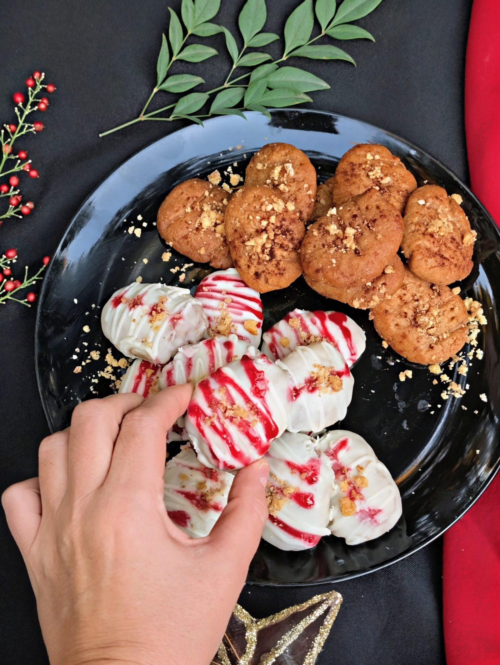 Make White Chocolate with Raspberry Drizzle Melomakarona Cookies