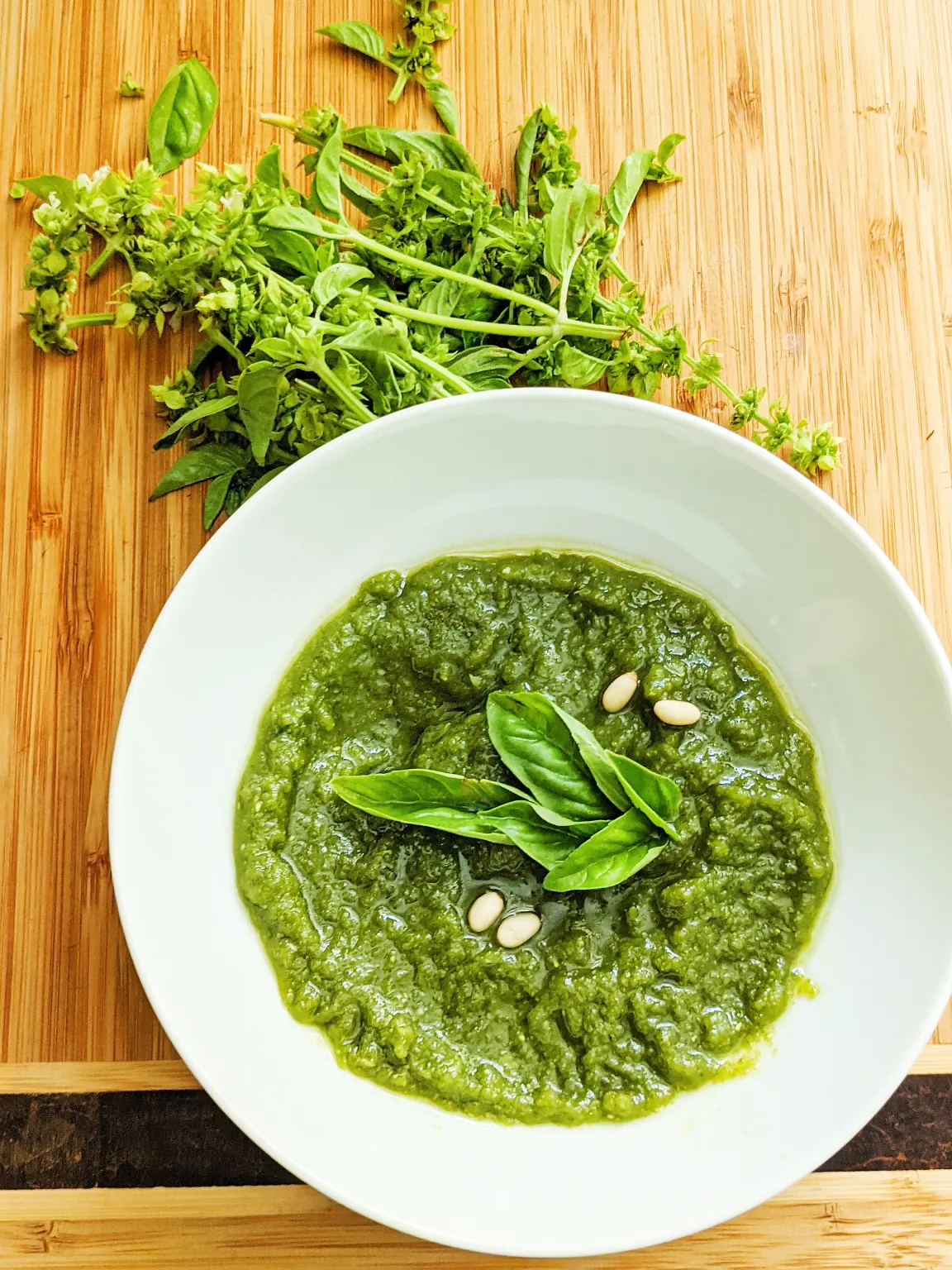 - Cut the eggplant into long lengthwise 1/4 inch thickness strips. You should get about 6-8 slices depending on the eggplant size. Prepare the pesto sauce. If you make it by hand, you can make it up two days in advance. Follow my pesto recipe here if you like.