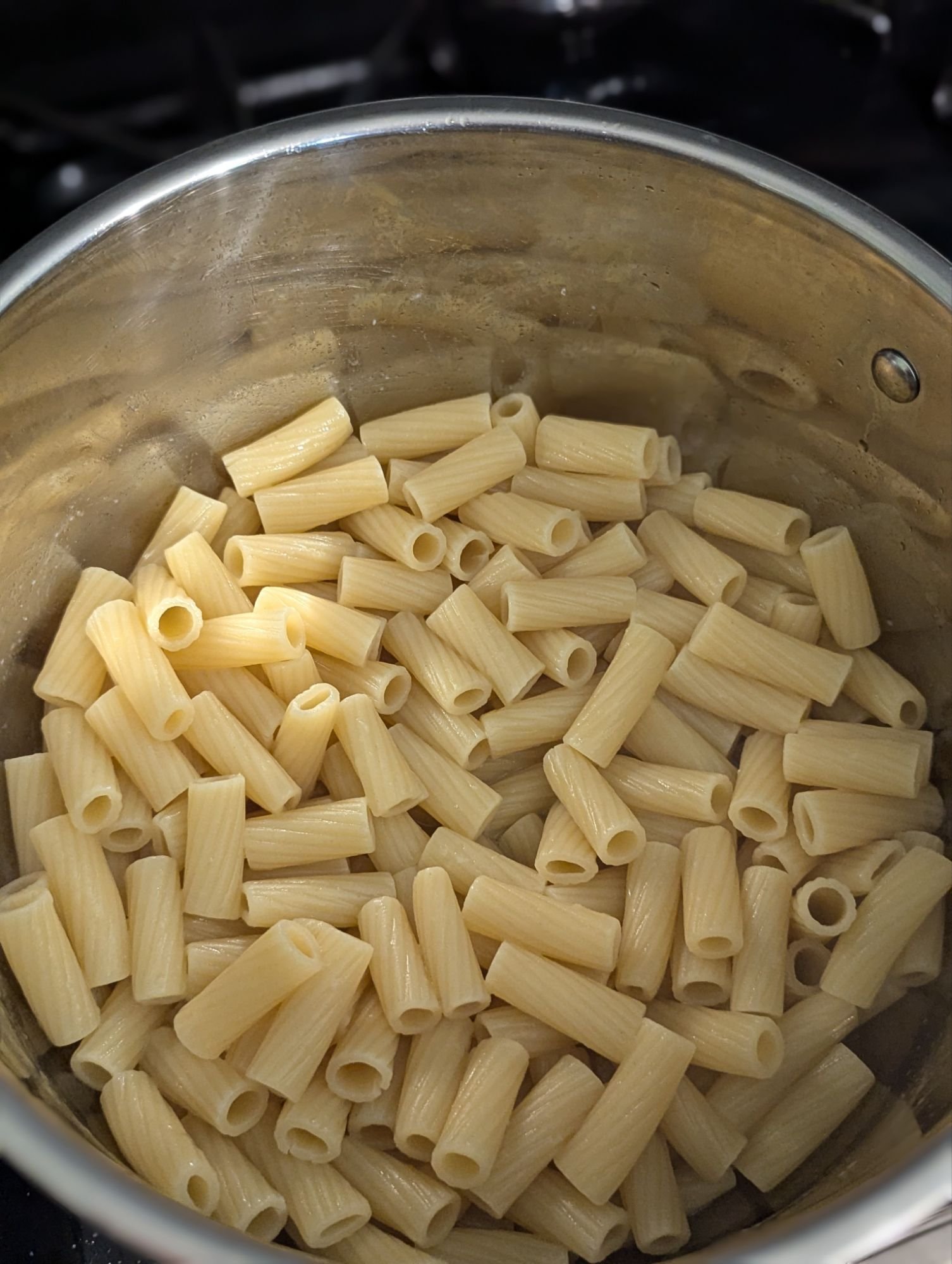 Pour the red wine to deglaze the pot, scraping up any browned bits from the bottom. Allow the wine to simmer for about 2-3 minutes.
