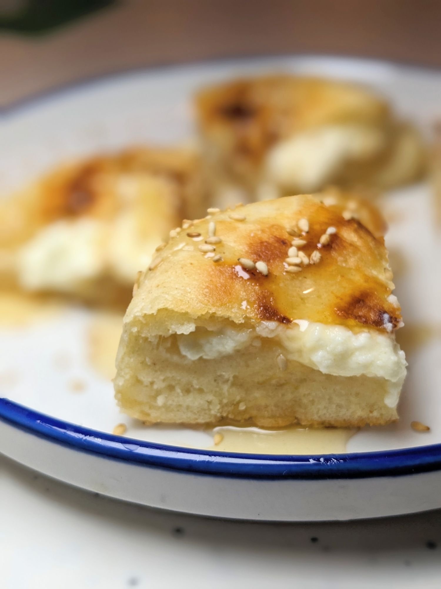 - Serve warm, and I love to drizzle honey over the top with sesame seeds. Store leftover pita in an airtight container at room temperature for up to 3 days. You can freeze uncooked stuffed pita, but make sure the pitas are separated by a piece of parchment paper in between to keep them from sticking.