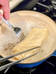 - Use a large enough pot for frying. (We used a small pot in the photos, so we could only fry one diple at a time.)
