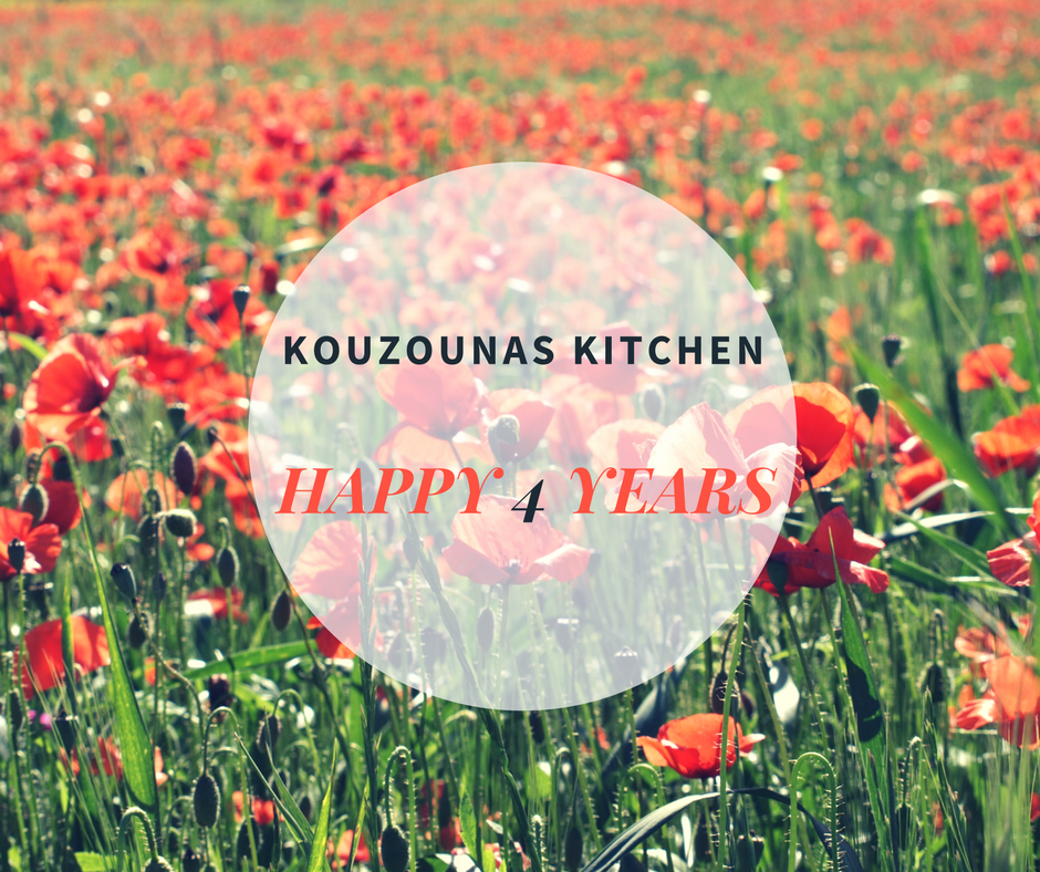 HAPPY BIRTHDAY KOUZOUNAS KITCHEN!! Today we celebrate 4 years of blogging on Kouzounas Kitchen.(It was actually yesterday, March 13th.) Wow, has it really been 4 years?! Where did the time go?? Dedications~ I would like to thank many many amazing friends, food bloggers, artists, chefs, and supporters. Thank you to…